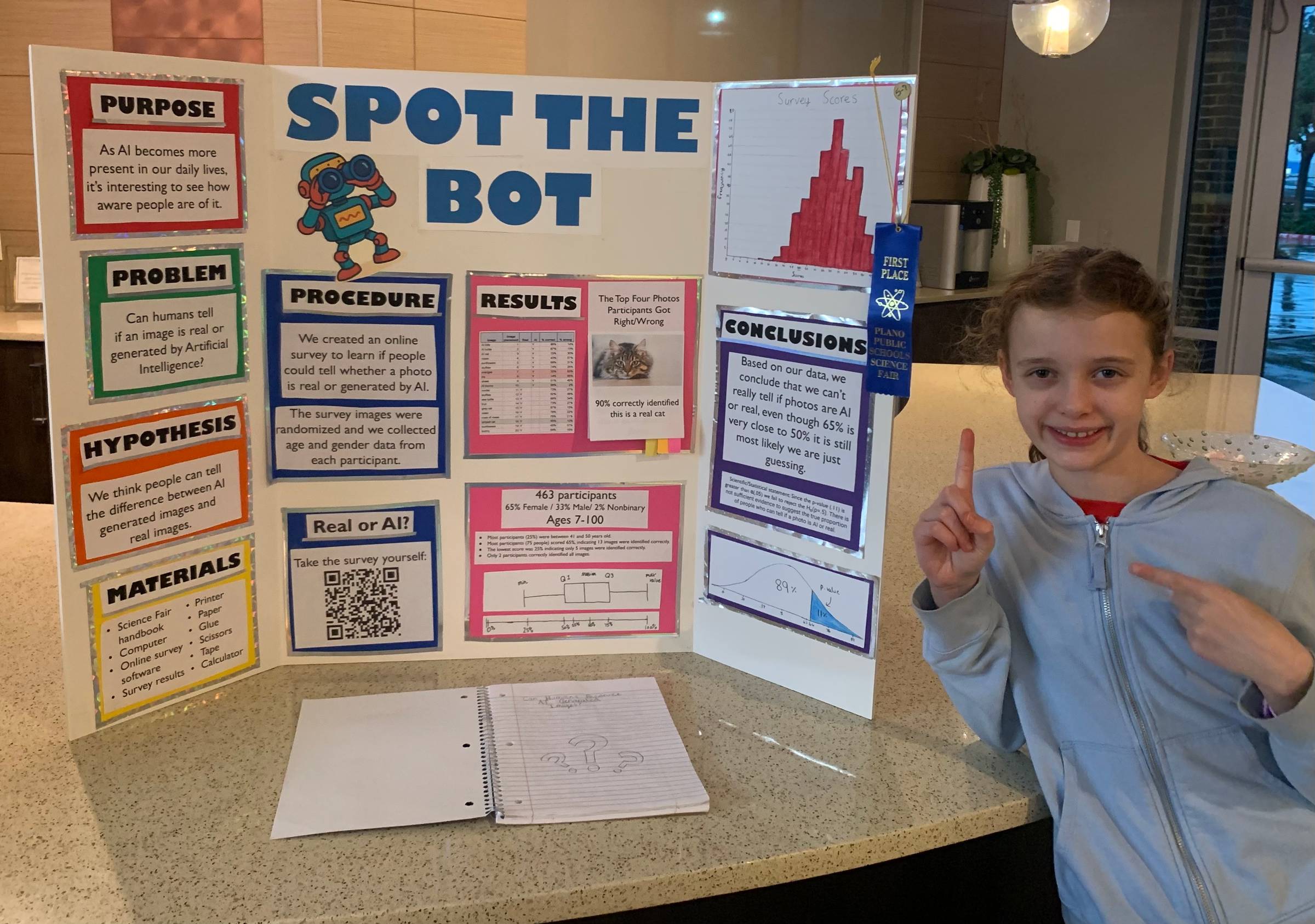 And in even more exciting news, my daughter and her friend entered the 5th grade science fair completely on their own this year. They designed the project, built the board, and tested whether humans can distinguish between AI-generated images and real photographs.