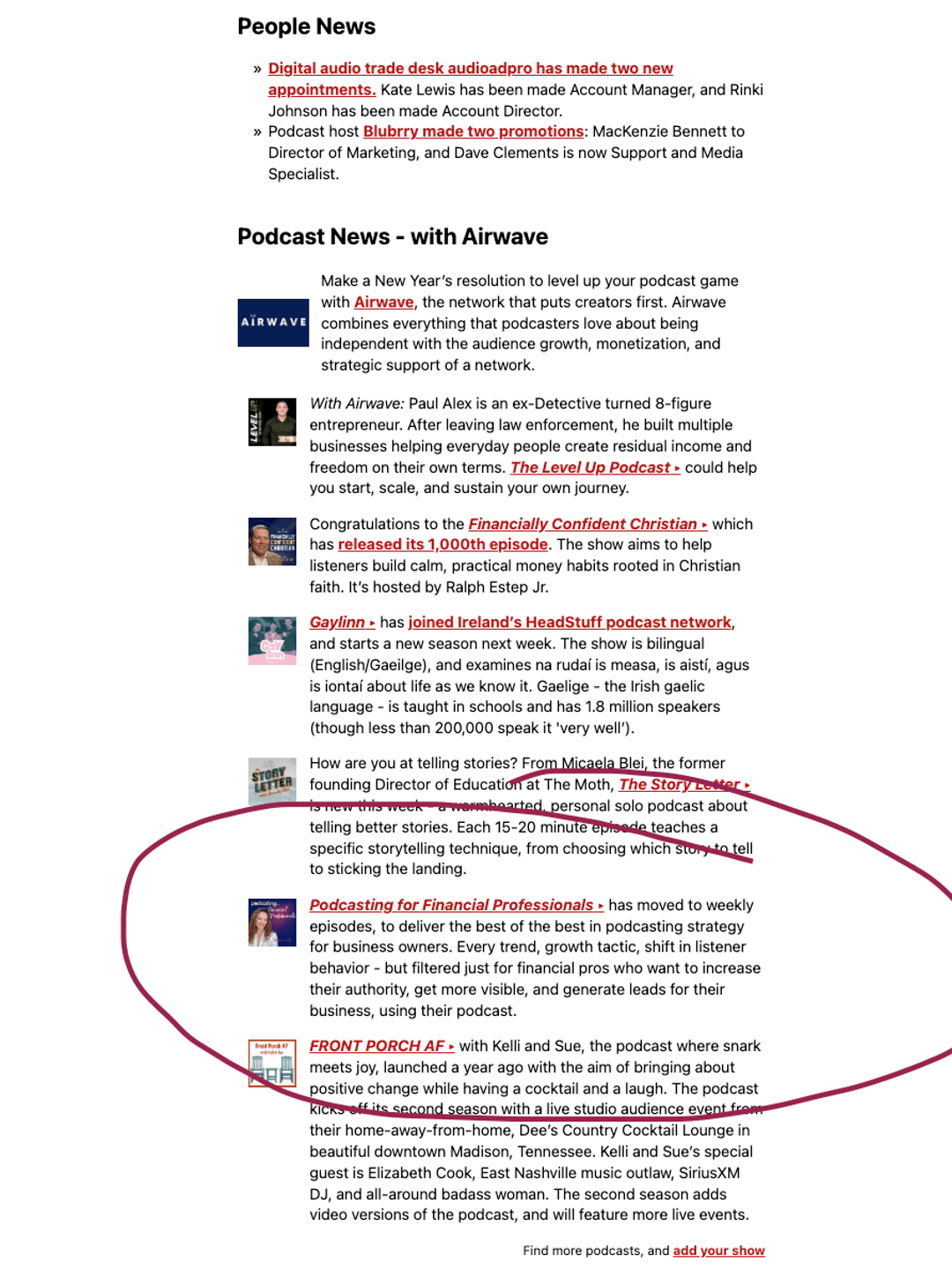 2. On 1/15/26, my show was featured in the PodNews newsletter AND on NewPodcasts