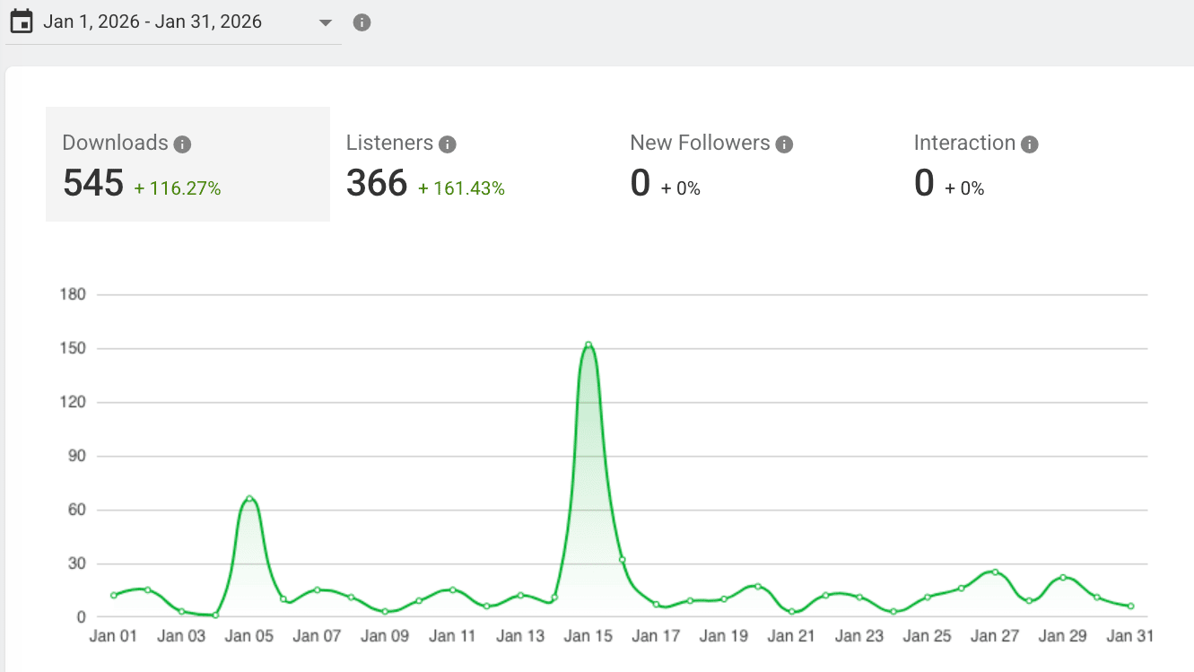 So, the real question is, what did this DO for me & my brand? Here are my show's stats from January. Notice the activity around the 15th of the month - wow.